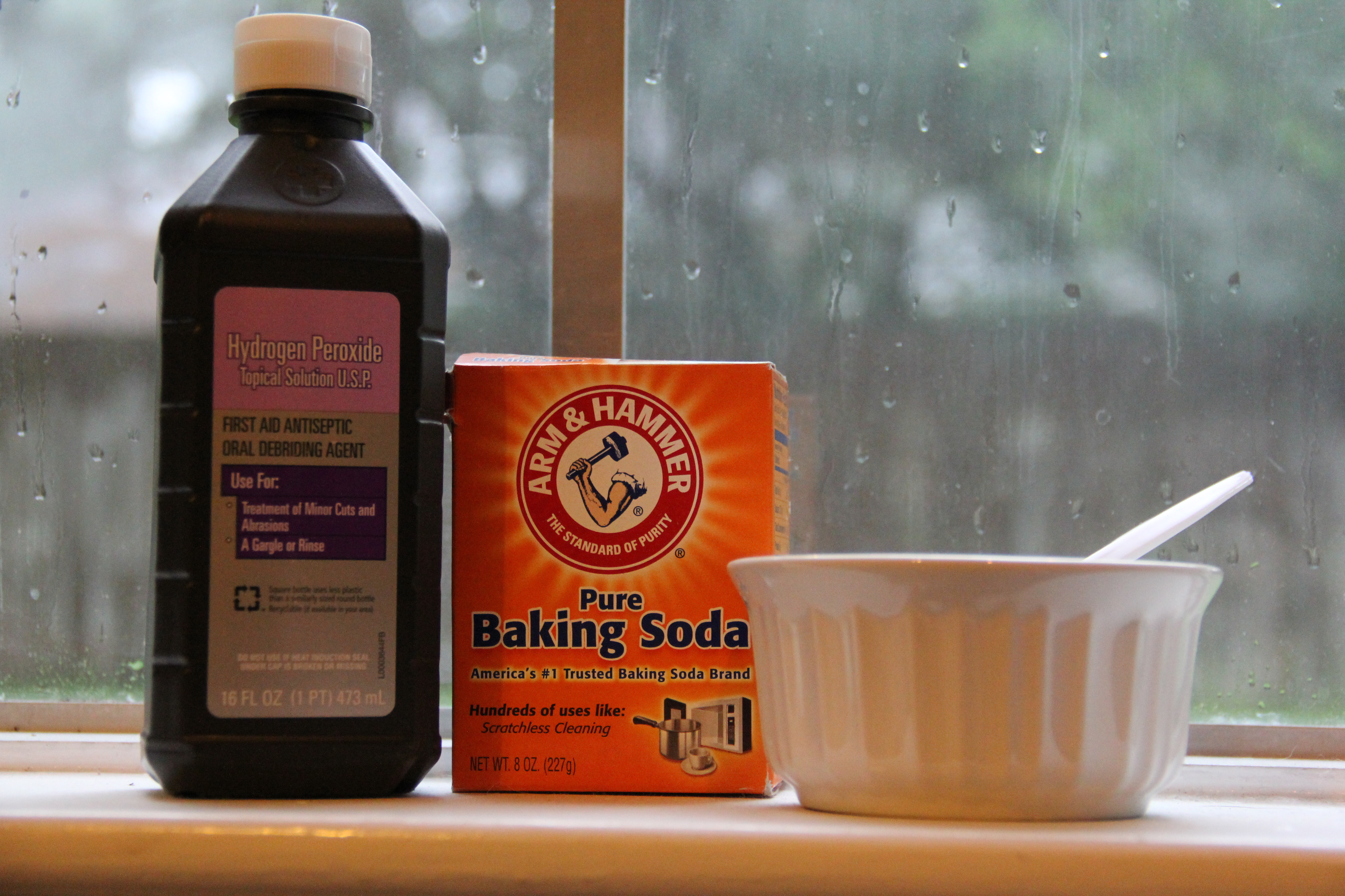 With two simple house ingredients, hydrogen peroxide, and the go to staple of any good DIY, baking soda, I prepared to tackle another Pinterest DIY.