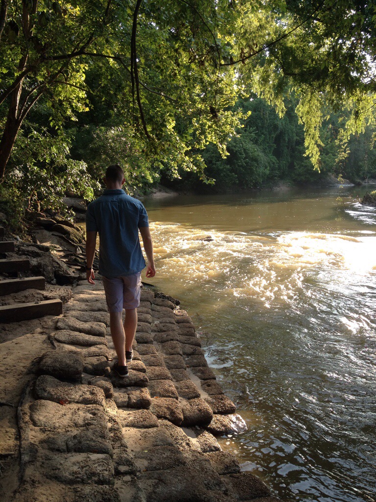 After the let down of our meal, we wanted to end the night on a pleasant note, and headed to a local park. We were thrilled to find out that there was one located right near our apartment, and after winding our way through a neighborhood, we were rather disappointed by the small park; regardless we decided to walk around. Much to our delight, we discovered a trail that lead down to a small river, where people who go canoeing launch their boats.