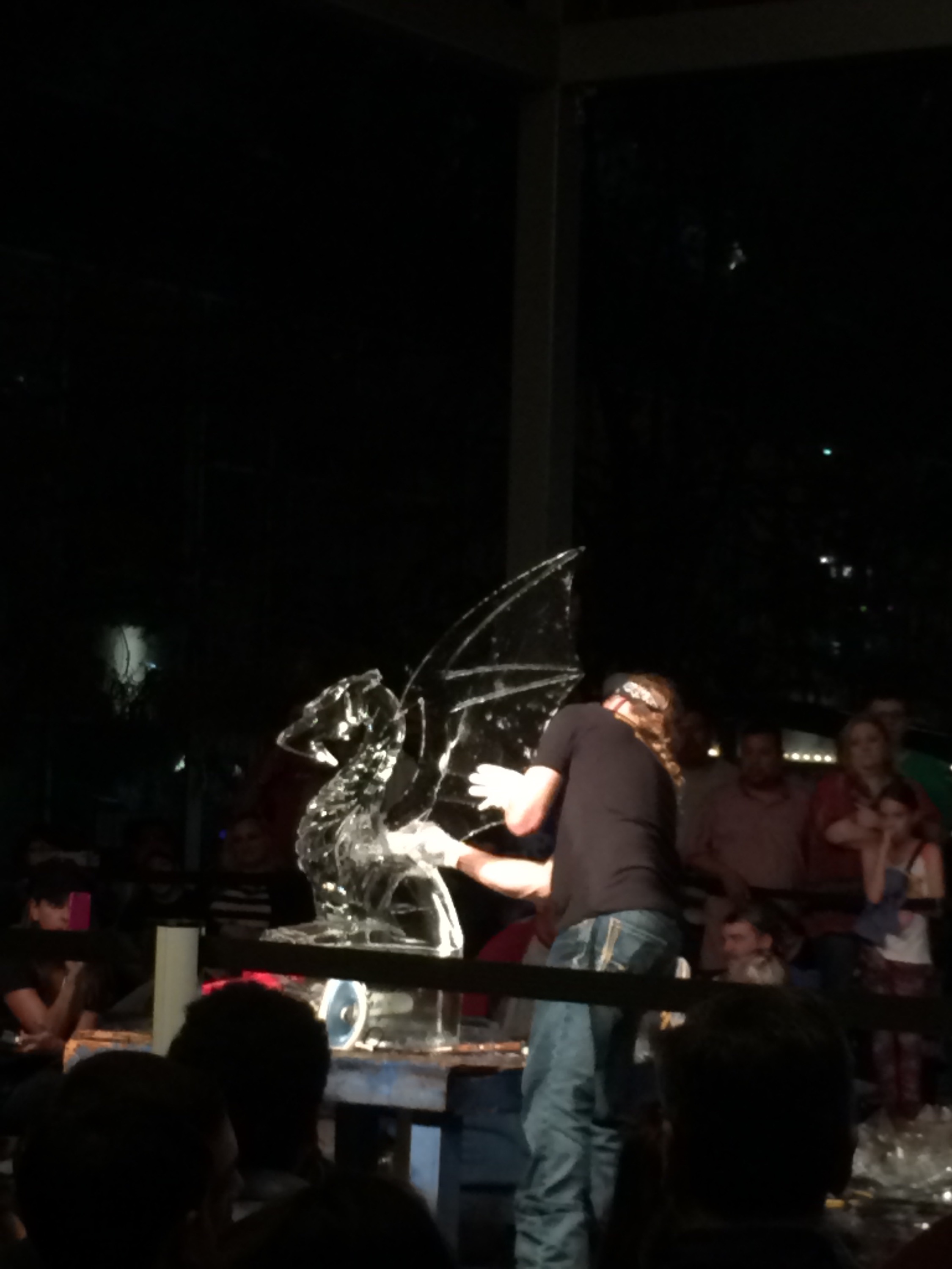 Both artists ended up creating beautiful dragons from their blocks of ice, and while the detailing was stunning on each, the crowd favorite was the winged creation below.