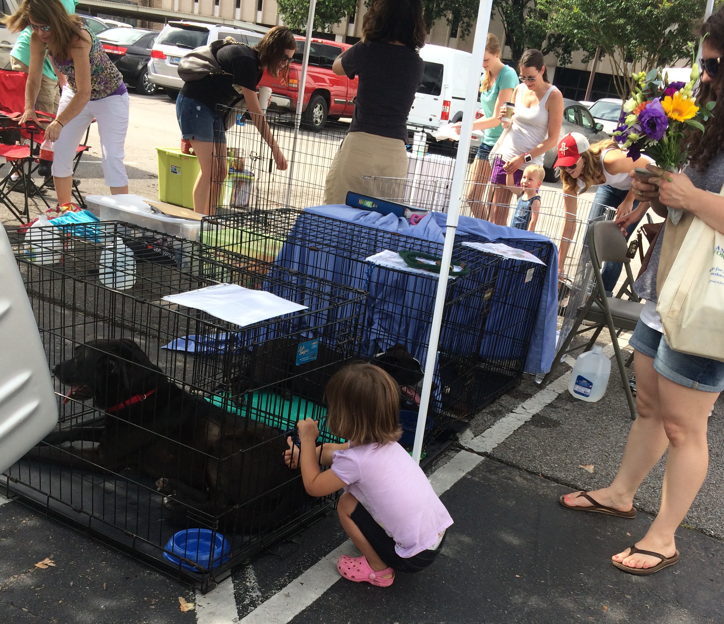 Not only did the market boast great produce (we got some cucumbers and they were delicious), but they even had puppies!! I was strongly rooting for this girl to convince her mom to let her get the dog.